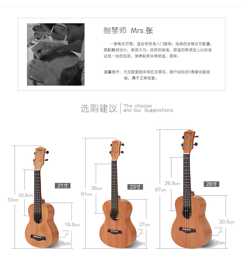 Кака укулеле укулеле KUC-25 21/26/23-дюймовый начинающий гитара