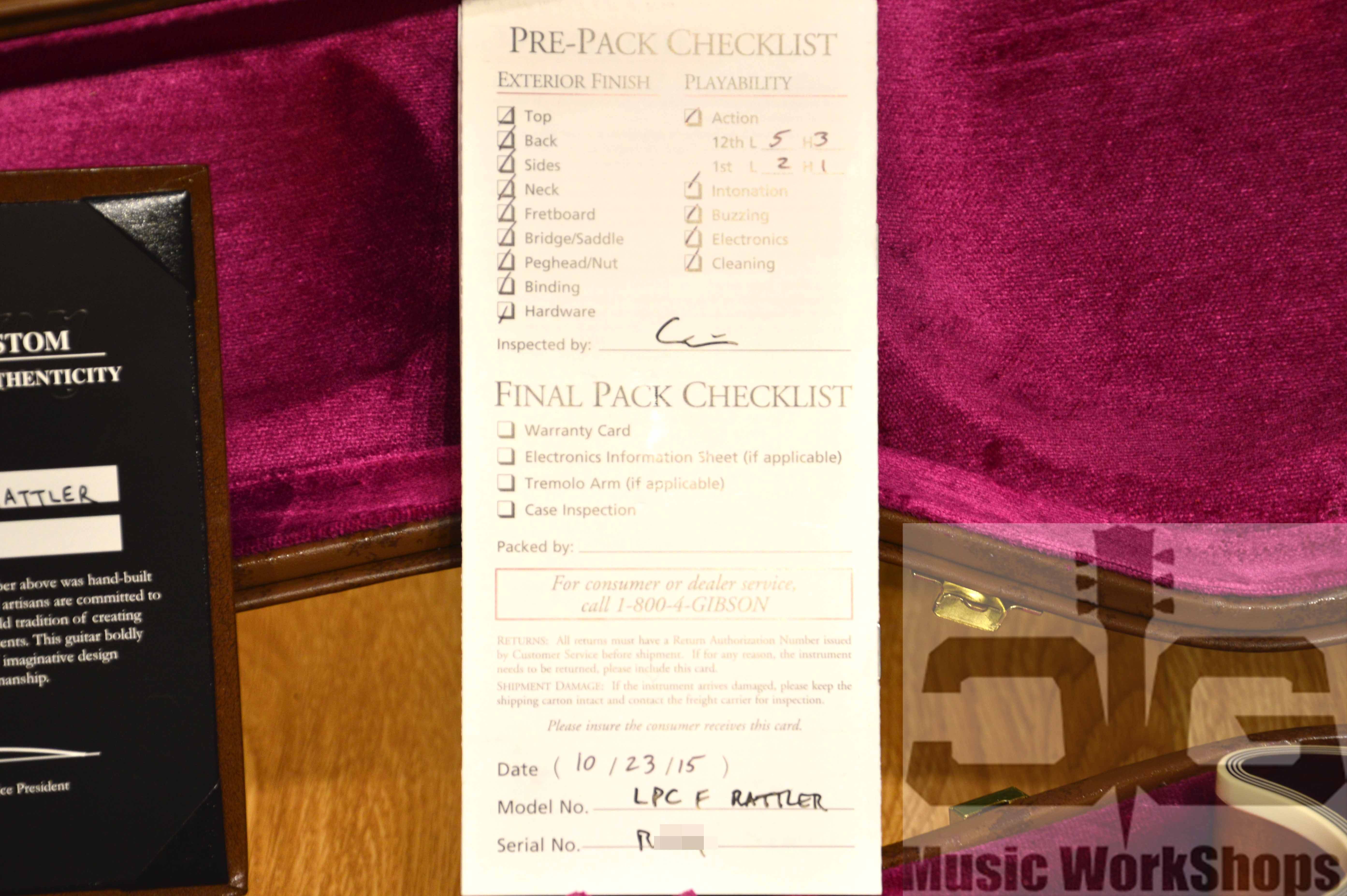 Приложение: оригинальная жесткая коробка Гибсона, сертификат, сертификат