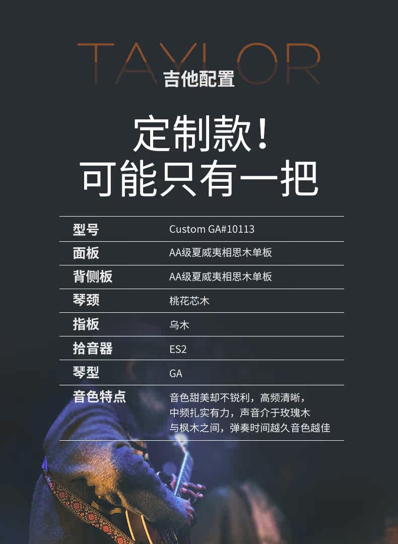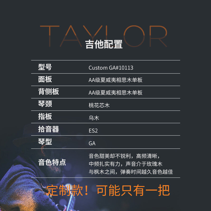 Тейлор Тейлор Custom GA#10113 Hawaii Full Single Single Box Folk Box Folk Guitar Limited