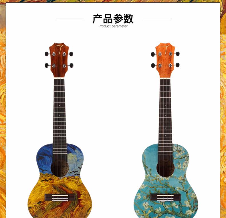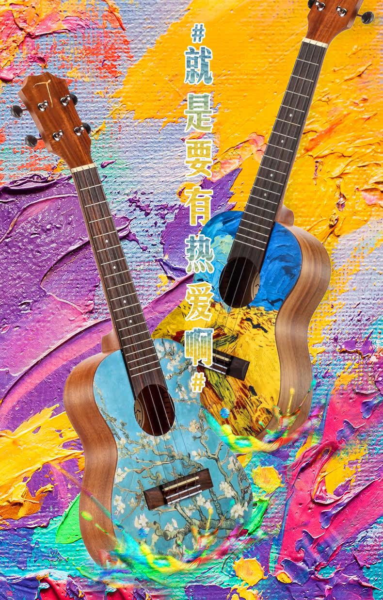 Окрашенное укулеле с партитурой для начинающих, гитара, 23 дюймов