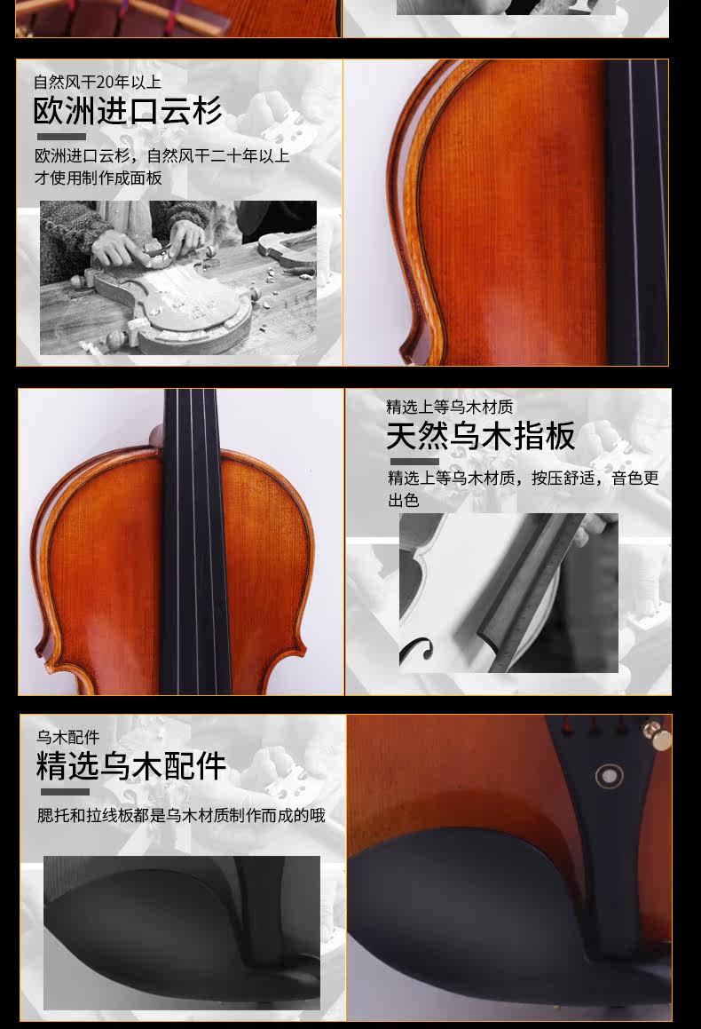 Чистое ручное европейские материалы профессиональная скрипка, аксессуары из Ebony Jujube, пианино -коробка с высоким уровнем.