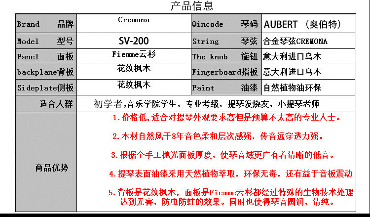 | Цвет: | Итальянская Cremona Высококачественная скрипка SV200 4/4 Высота выше 150, Итальянская Cremona High-классная скрипка SV200 3/4 высота около 145, Итальянская Cremona Высококачественная скрипка SV200 1/2 высота около 135, Итальянская Cremona High-классная скрипка SV200 1/4 высота около 125 |