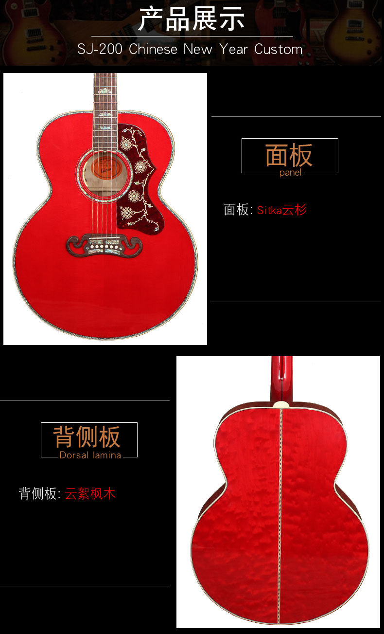 | Цвет: | SJ-200 Китайский Новый год на заказ народная народная гитара народная коробка |