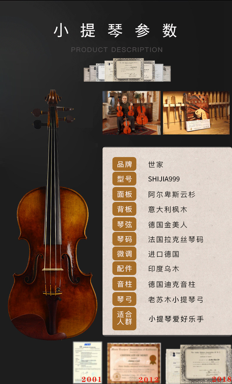 世家 Импортная профессиональная скрипка из натурального дерева для взрослых, DIY, Италия