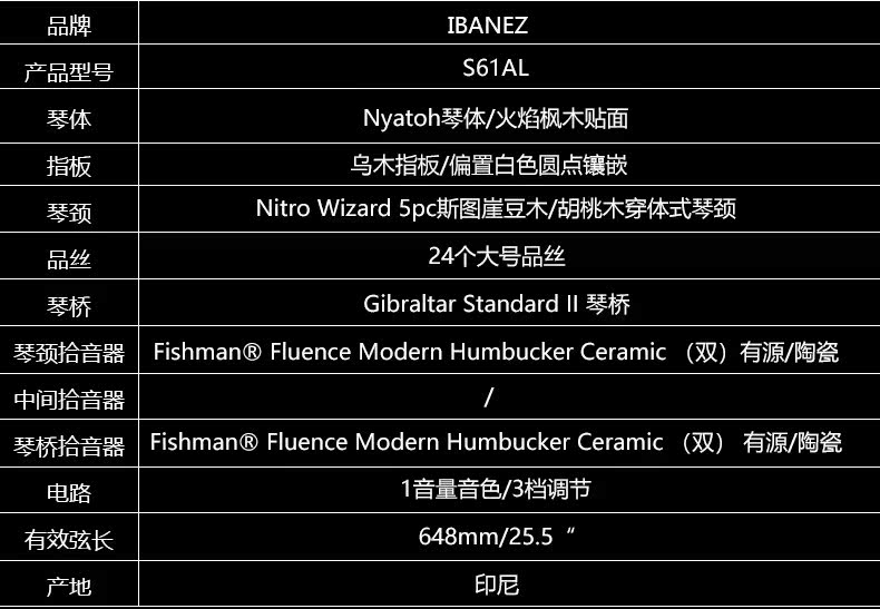 Ibanez Электрическая гитара Yi Banna S61AL Silver Silver Temple 24 Продукт Фиксированный Qinqiao Fishman пикапы Индонезия