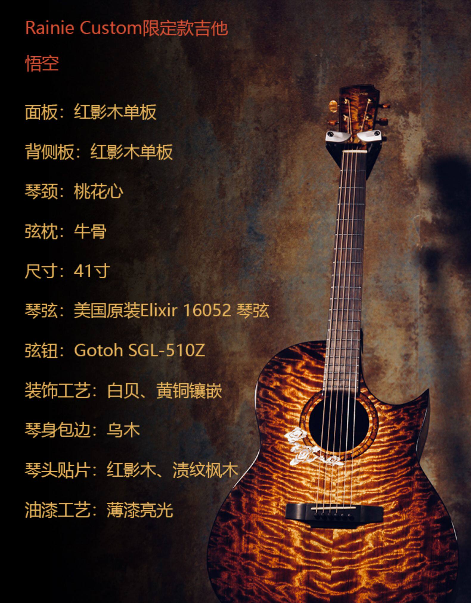 Rainie Xiaoyu Goku Guitar Custom Limited Manual Management Fult Single Guitar 41 -INCH CA Red Shadow Wood Back Side