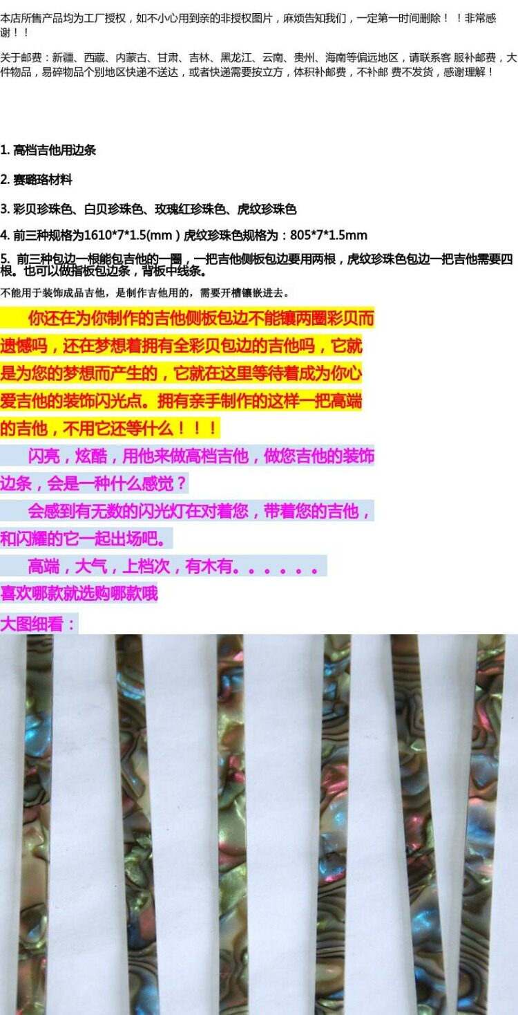 Гитара Collilu приносит платформу для пальцев, принесите Beltles Pearl Tiger Decorary Striper материалы материалы материалы