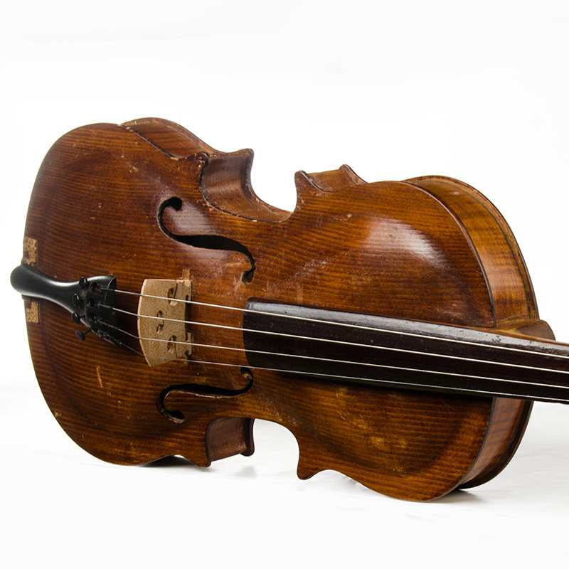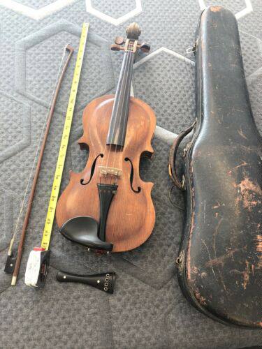 Полно -размерный антикварный скрипка, лук и деревянная коробка №52