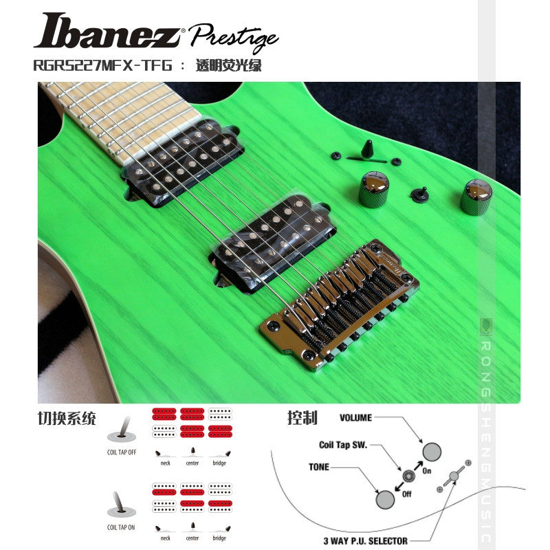 Ibanez Ibanez Rgr5227mfx-TFG Green 7 Strough Double Double Shake Power Guitar Nissan подлинный