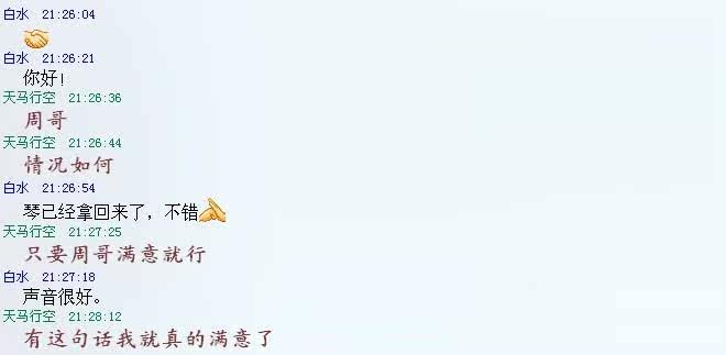 Следующий скриншот от друга в Шэньчжэне (этот друг был представлен моим старым клиентом. Он старший мастер золотистого камня, пианино в стиле хорошего и гитару. Он также является гитарой. Мастер), он связался Я и купил скриншот бази 20 июня. Друг сказал мне что -то после получения пианино, особенно оценку звука пианино. Мой друг вчера (2012.9.26 передал мне свою фотографию исполнения).Скриншоты обмениваются.