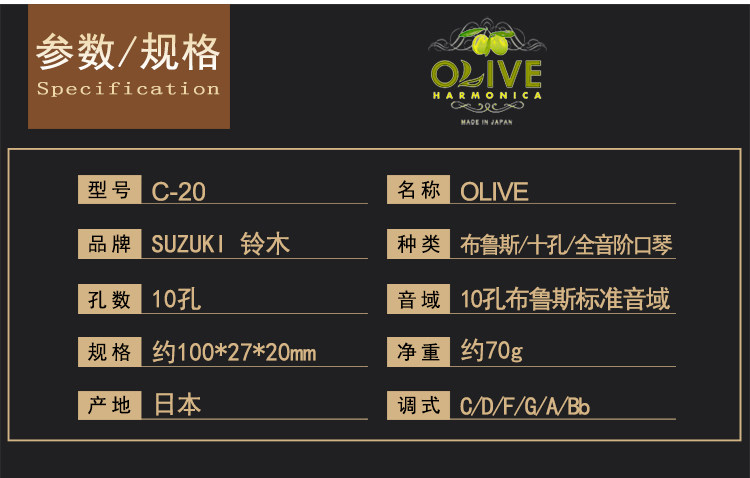 Япония Suzuki Suzuki Bruce Piano 10-луночный профессиональный класс C-20, студент-студент с десяти отверстием для перорального пианино