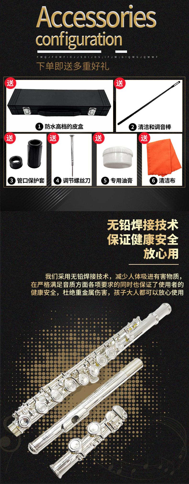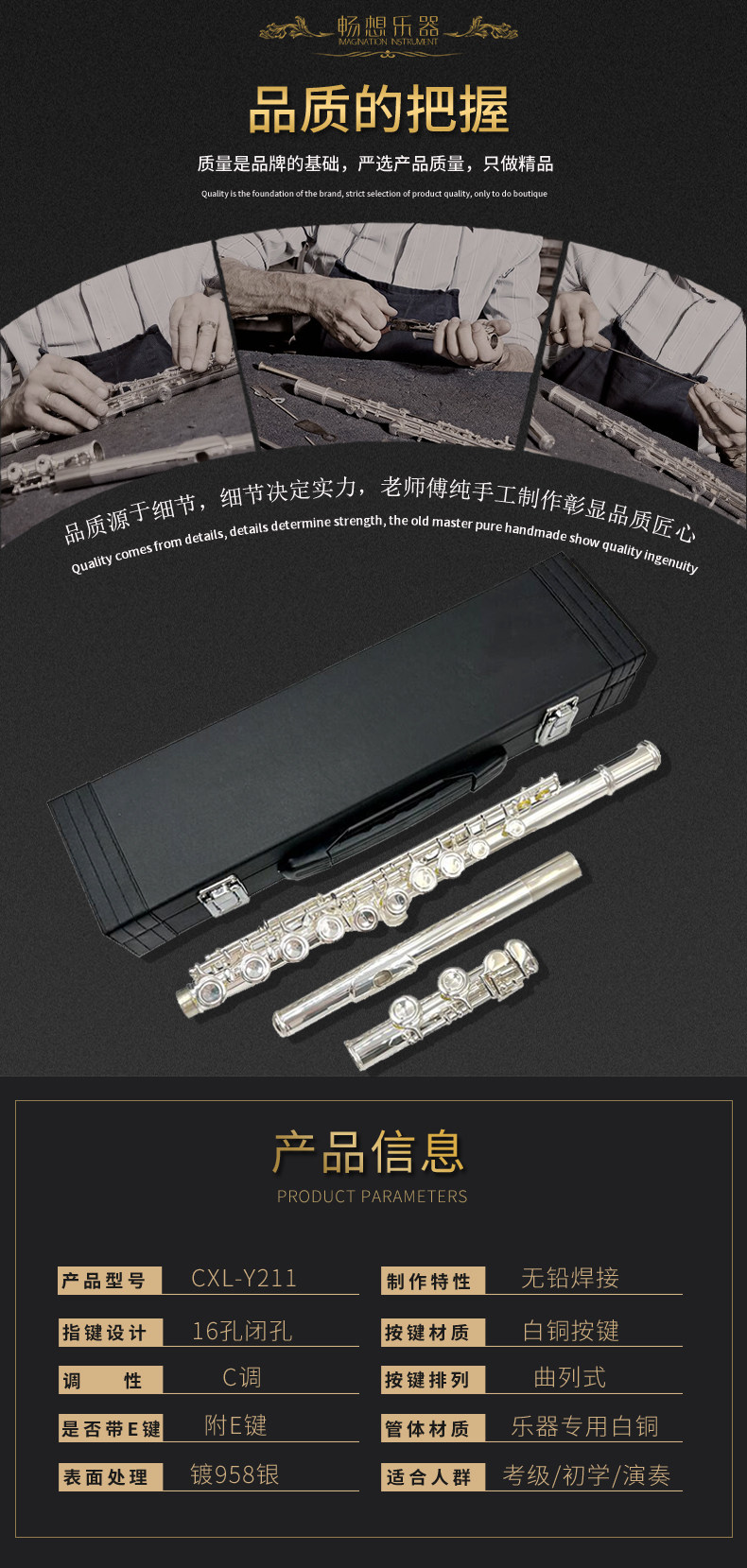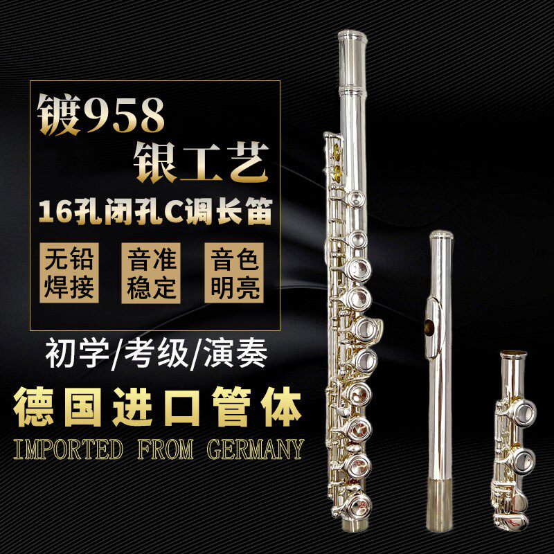 Инструмент флейты 16 отверстий, закрытые отверстия, сегментация C, серебристое покрытие, немецкий корпус трубы, новичок в основном экзамене.