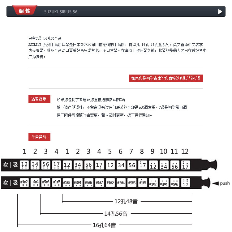 SUZUKI Первоначальный импортный японский Suzuki Sirius 14 -Hole S56 Полуиколтаж пероральный