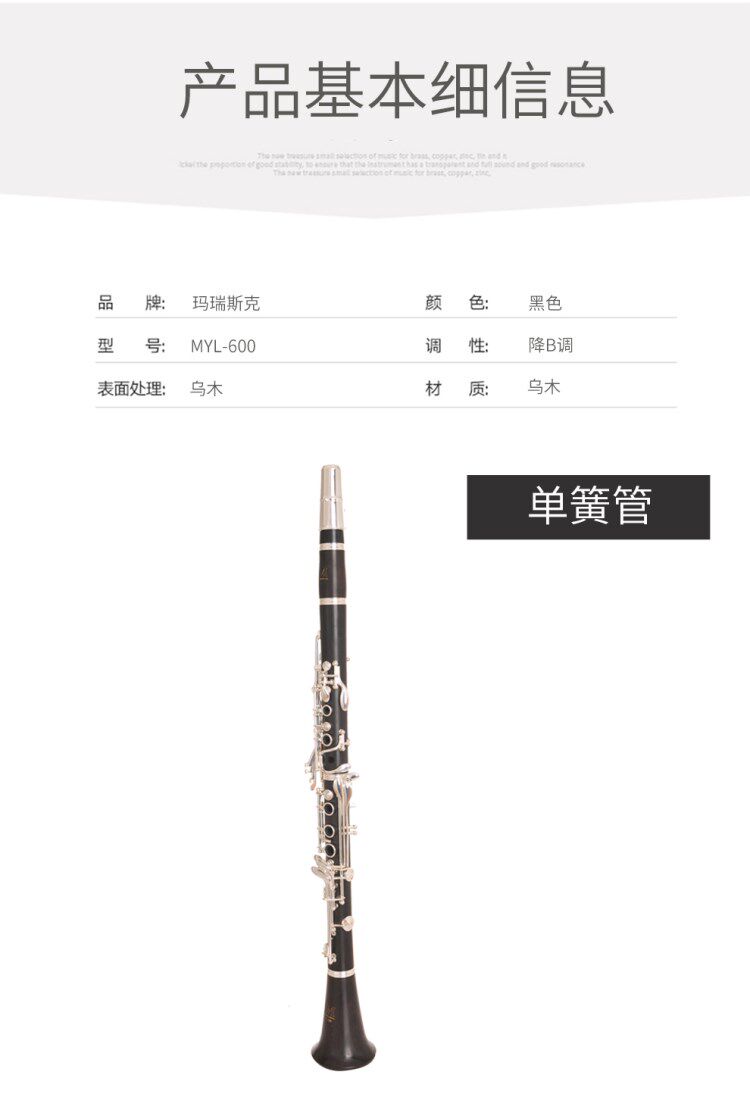 Bloss Clarinet/Black Tube Musical Instrument Нижние B мелодии, подлинные первичные испытания, JM Marrisk