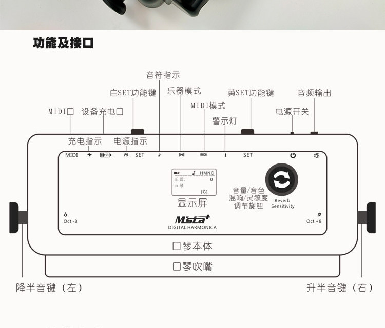 墨兹卡 MIDI Electronic Digital 12 -Hole Полу -тональный пероральный фортепиано HM12 Переменный тон можно подключить к звуковой карте гарнитуры звуковой