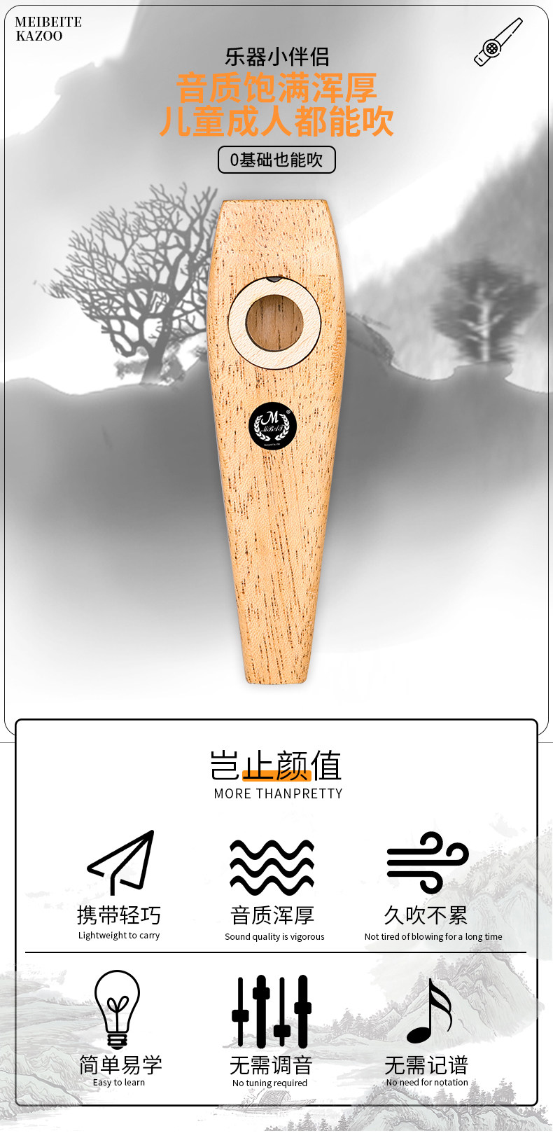 Merbet Wood -Made Cardfield Portable Легко для обучения без настройки не требуется для игры в бревнах с съемной флейтой дерево