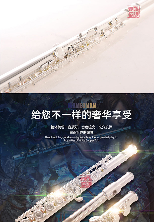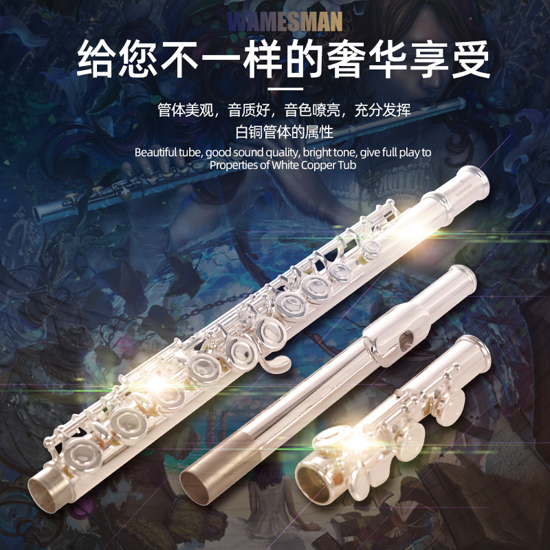 Медная серебряная флейта, профессиональные музыкальные инструменты, подходит для начинающих