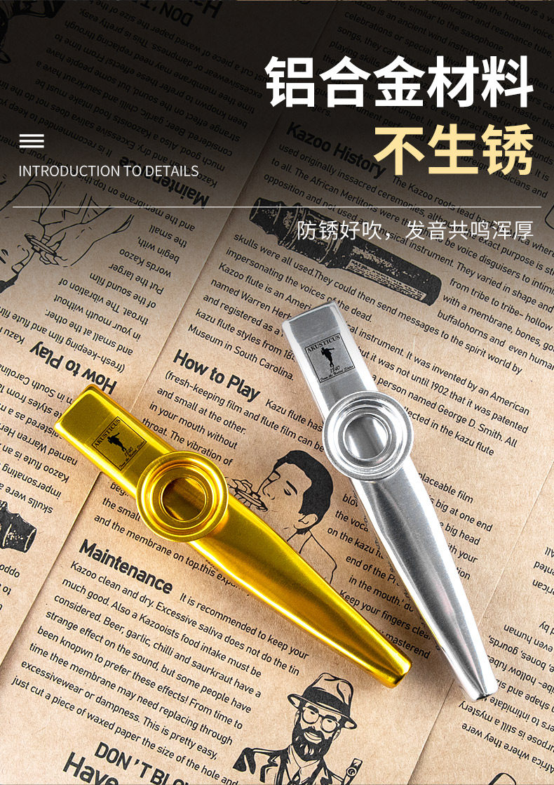 Akusticus Kazu Flute Professional Metal Kazoo Guitar Yuxili Accompanent просто изучение нишевого инструмента