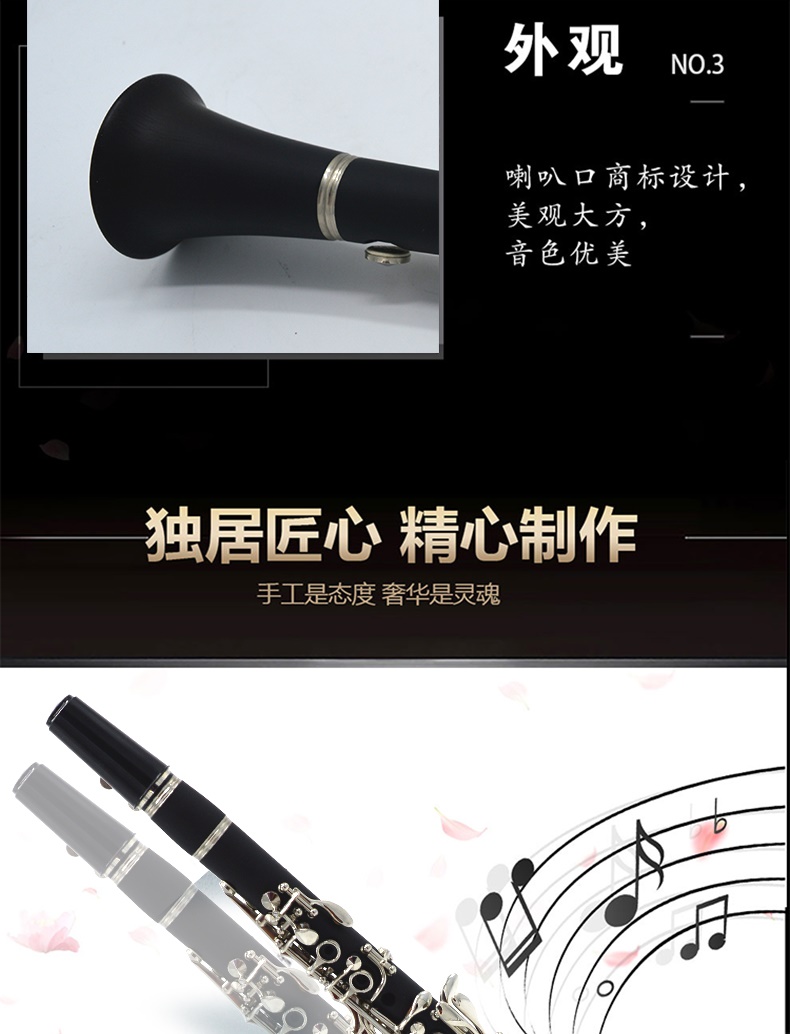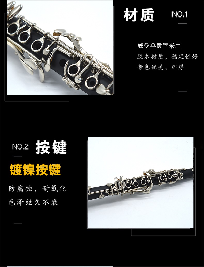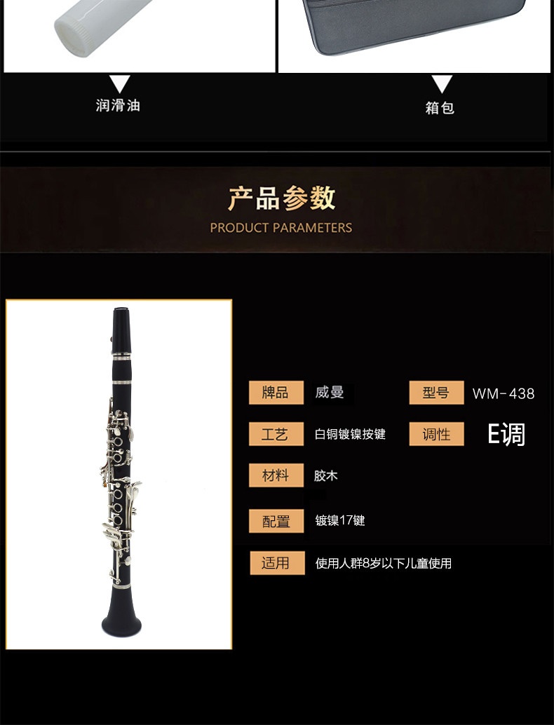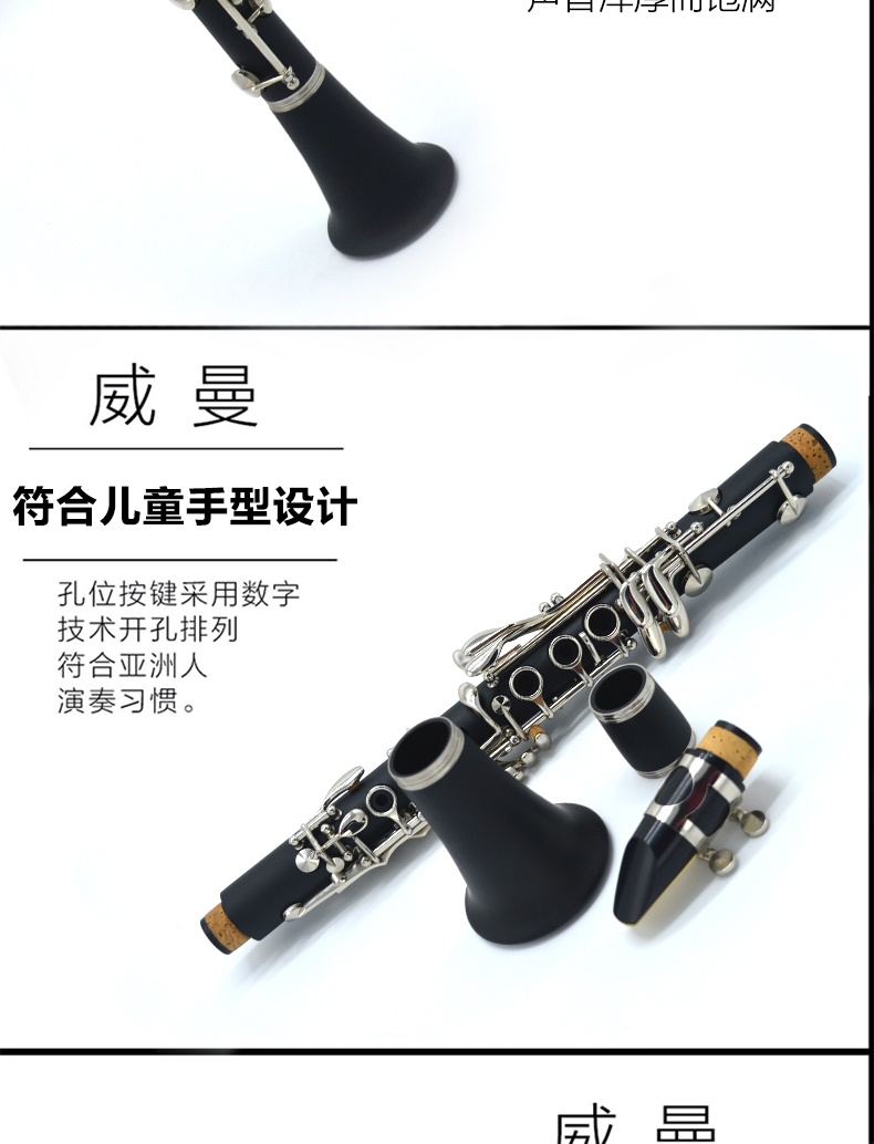 Высокий Тайвань Уиллман бросает E -Tranting Small Clarinet Childran's Black Tube Musical Instrument Clue Wood Test