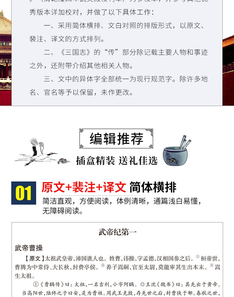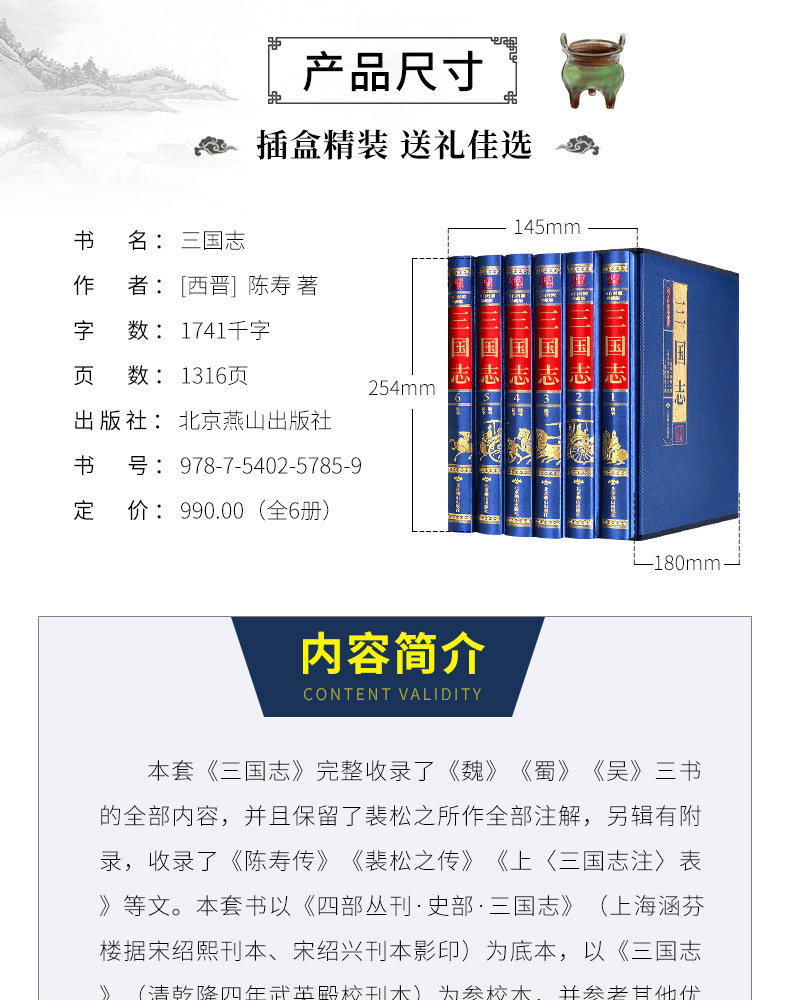 Полная версия Three Kingdoms Pei Song's Note Полный набор подлинных оригинальных переводов в твердом переплете 6 томов Чен Шоу, Чен Шоу по сравнению с тремя королевствами, беспрецедентным переводом китайских исторических классических китайских, народных, взрослых книг для чтения