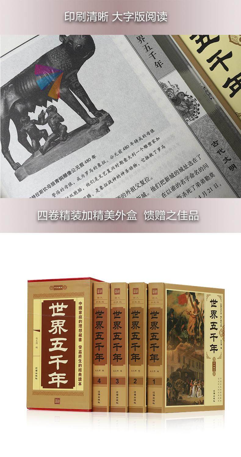 Подлинный мир бесплатной доставки 5000 лет Полный набор из 4 томов в твердом переплете версии лучших книг по истории в Китае, 5000 лет исторического и культурного чтения, история истории знает справочник исторических знаний