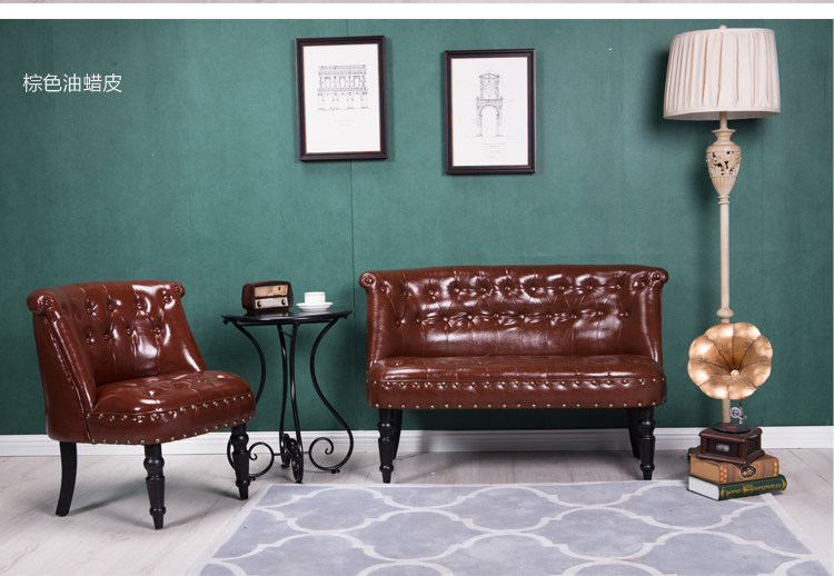 Ретро маленький диван для двоих для спальни, кофейная ткань, в американском стиле