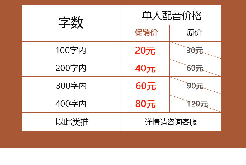 Новые и старые клиенты дают обратную связь Lida, оригинальный 100 -марактер 30 Yuan High -Ed Voice Actor теперь имеет всеобъемлющее снижение цен до 20 юаней (в том числе 22 сотен слов и 30 юаней, другие специальные дублирующие, такие как Fei Speak, английский, английский Кантонский и т. Д.)