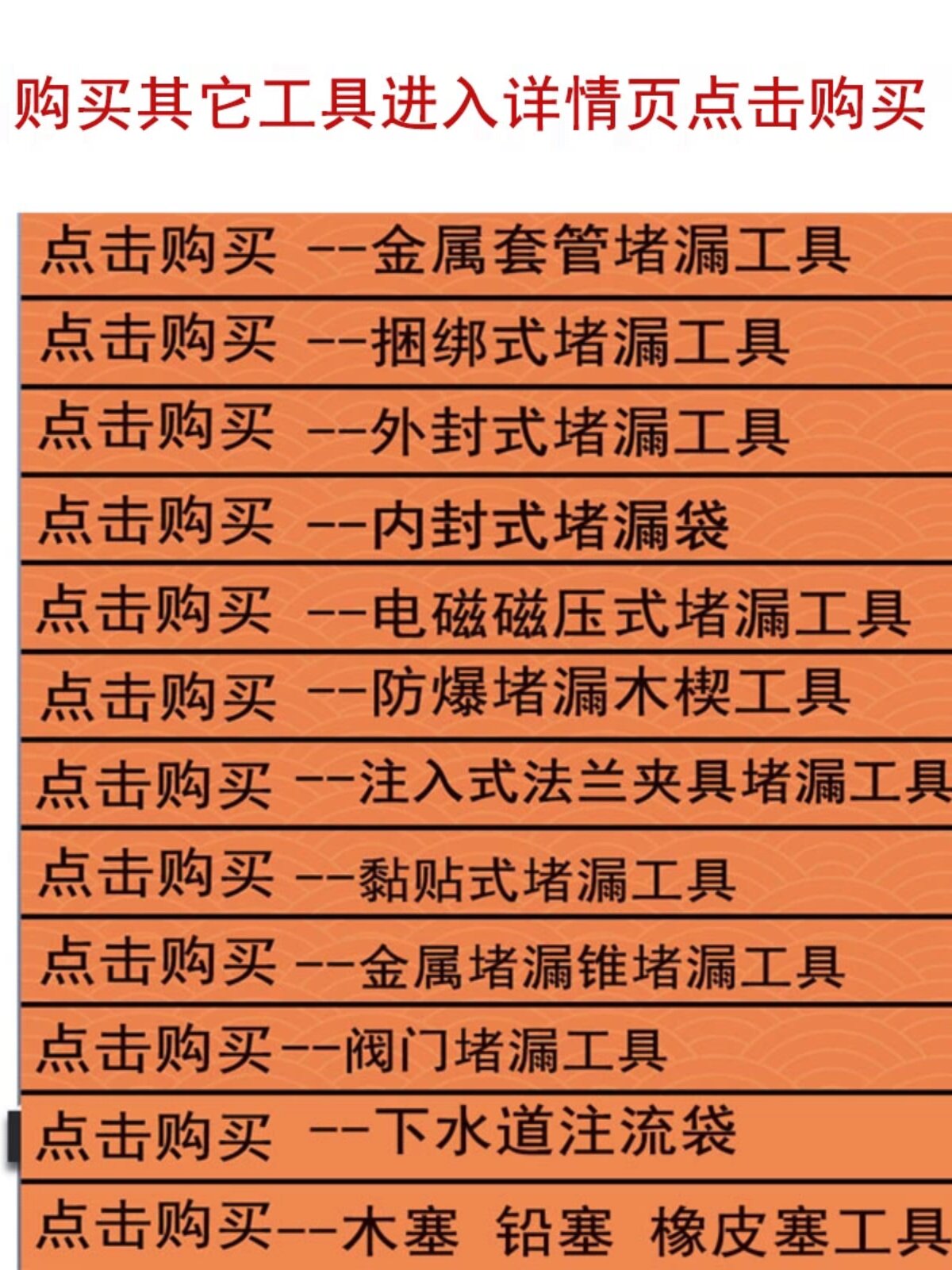 | Классификация цветов: | Инструмент для заглушки металлического корпуса, Инструмент для наружного уплотнения, Внутренняя герметичная сумка, Электромагнитный инструмент для закупоривания под давлением, Взрывозащищенный деревянный клиновой инструмент для закупорки утечек, Взрывозащищенный деревянный клиновой железный ящик для инструментов, Комплект зажимов для инъекционного фланца, Инструменты для герметизации клеем, Набор металлических заглушек-конусов, Инструменты для заглушки клапанов, Канализационная дроссельная полоса, Набор пробковых вилок, Пакет для предотвращения протечек, Одиночный магнитно-магнитный инструмент для тампонажа, Клей для труб, HK BK паста магнитный герметизирующий клей, Нестабильный |