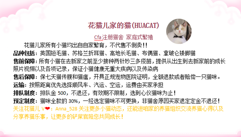 Пожалуйста, свяжитесь с обслуживанием клиентов сначала, чтобы выбрать кошку. Все котята, размноженные цветами кошек, включают все три вакцины против иглы и договорились о том, чтобы отправиться в новый дом примерно через три месяца. Если сами гости сдают кошку, The The Депозит не будет возвращен! (Кошки на следующих фотографиях ищут новый дом)