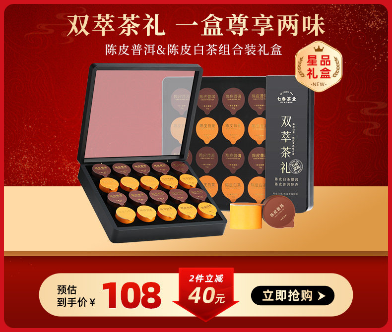 七春 Кожура мандарина, чай Пуэр, чай Сяо Цин Ган из провинции Юньнань, 30 штук