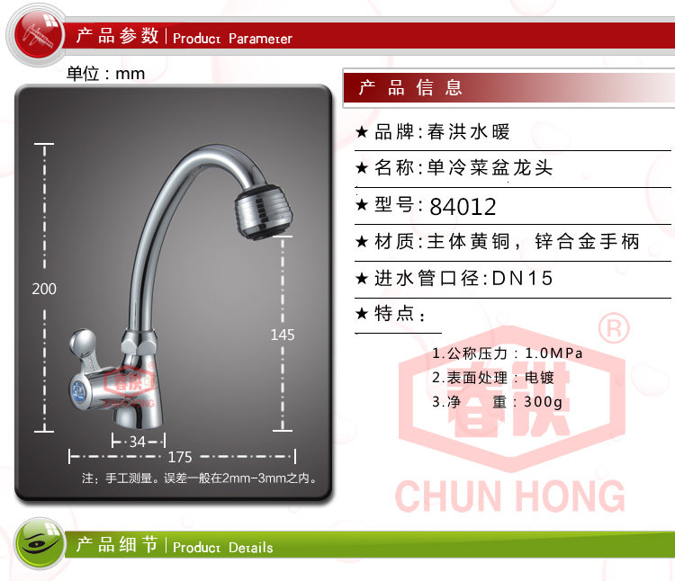 春洪 Медная холодная одно отверстие из нержавеющей стали