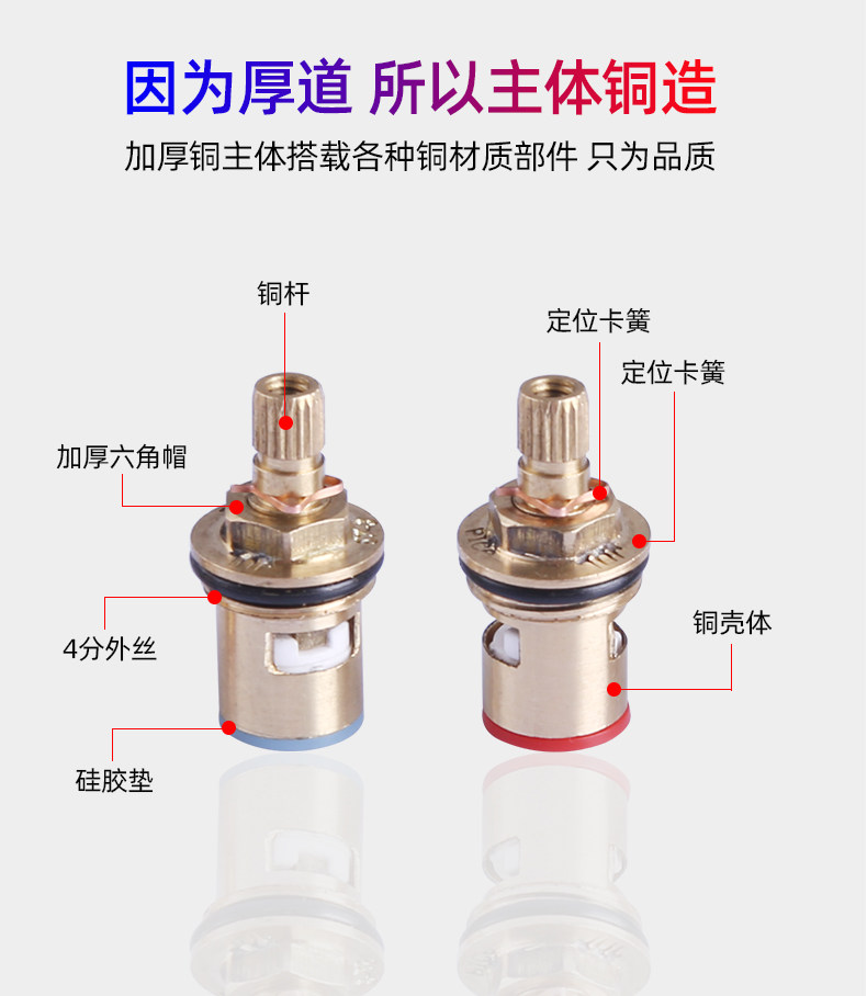 Ядро клетки для водопровода All -copper Одинокий холодный и холодный смеситель быстрый развернутый керамический клапан