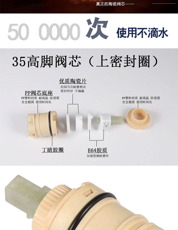 35 -мм высокого клапана, герметичный герметичный и поворот на герметичной воде. Керамический клапан Керамический клапан Сердечный и горячая вода Смешанная керамическая керамическая керамическая