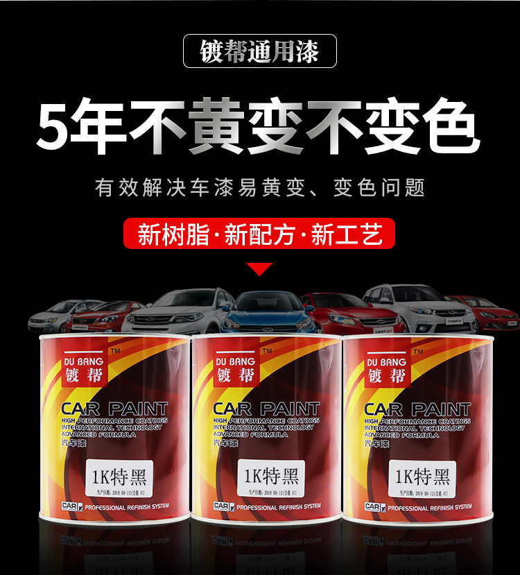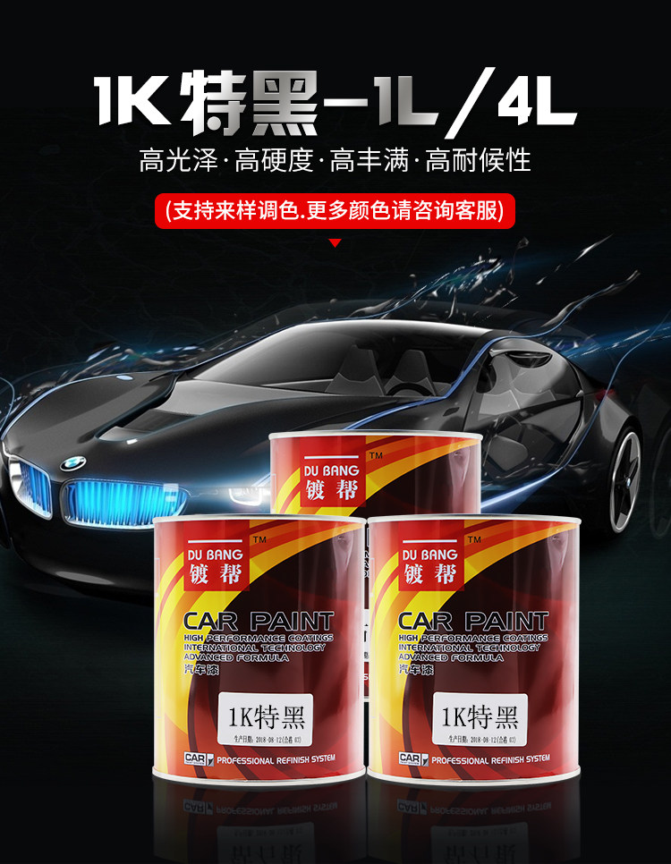 镀帮 Фарфоровая автомобильная краска одиночная компонент 1K Специальная черная краска Цвет краски матери 1K Стандартная черная автомобильная краска 1L Установка