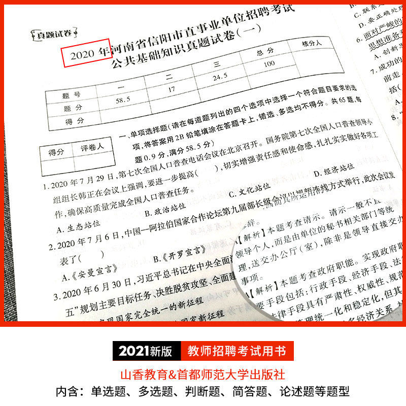 Shanxiang 2021 Учительский экзамен по набору персонала истинный анализ реальных вопросов и экзаменационная статья Общественные базовые знания набор персонала 2021 Общественные базовые знания Истинный вопрос Хенан Хэбэй Шаньси Джилин Анхуи средней школы средней школы общий детский сад
