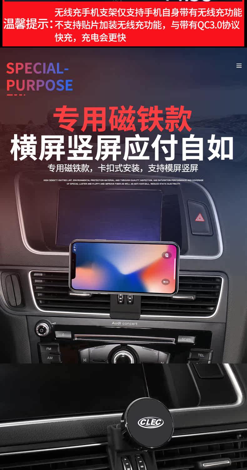 Автомобильный держатель для мобильного телефона Audi A3 A4L A5 A6L Q3 Q5L модифицированный специальный держатель для мобильного телефона с беспроводной зарядкой