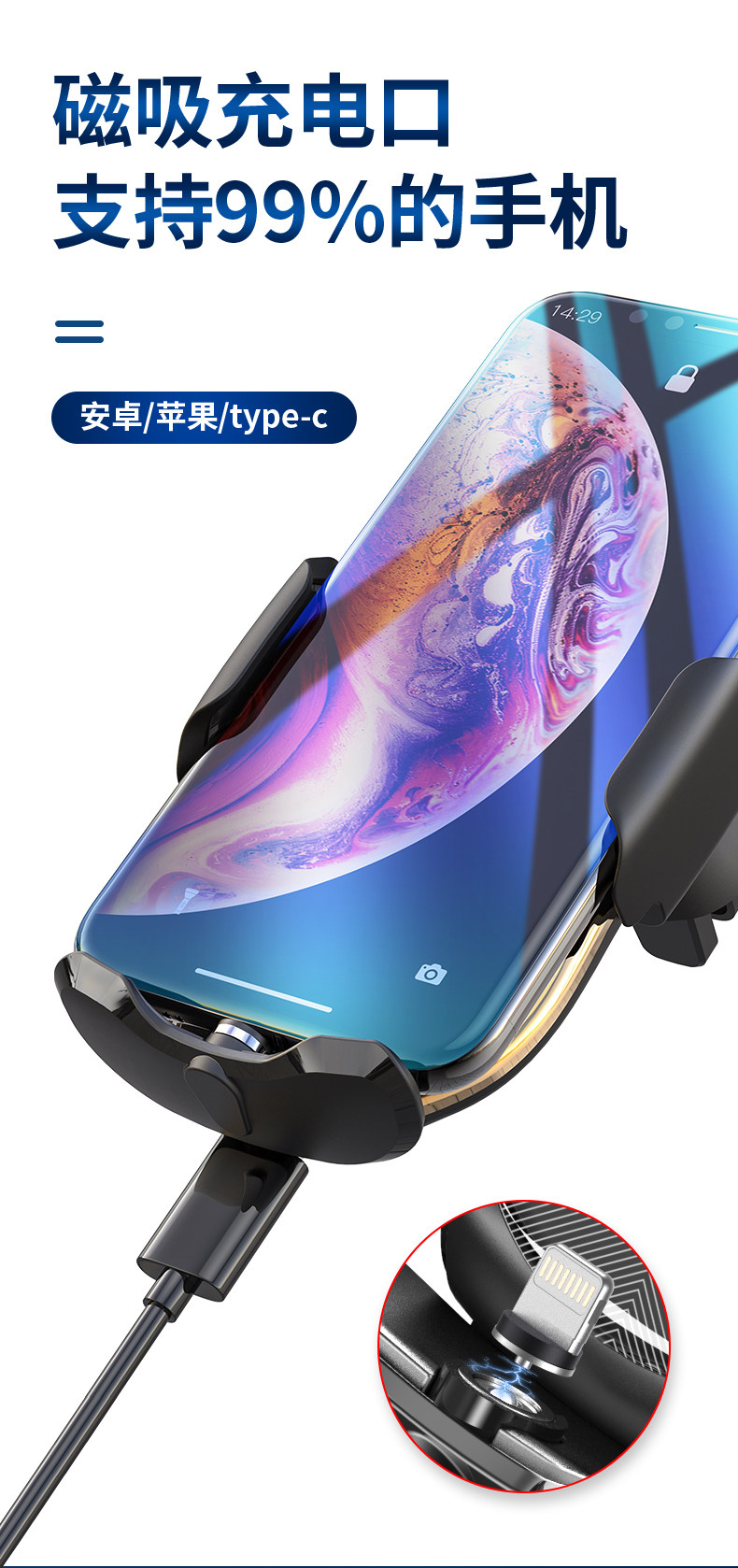 Apple, huawei, беспроводной держатель для телефона, автоматическое динамичное индукционное универсальное зарядное устройство для навигатора для автомобиля