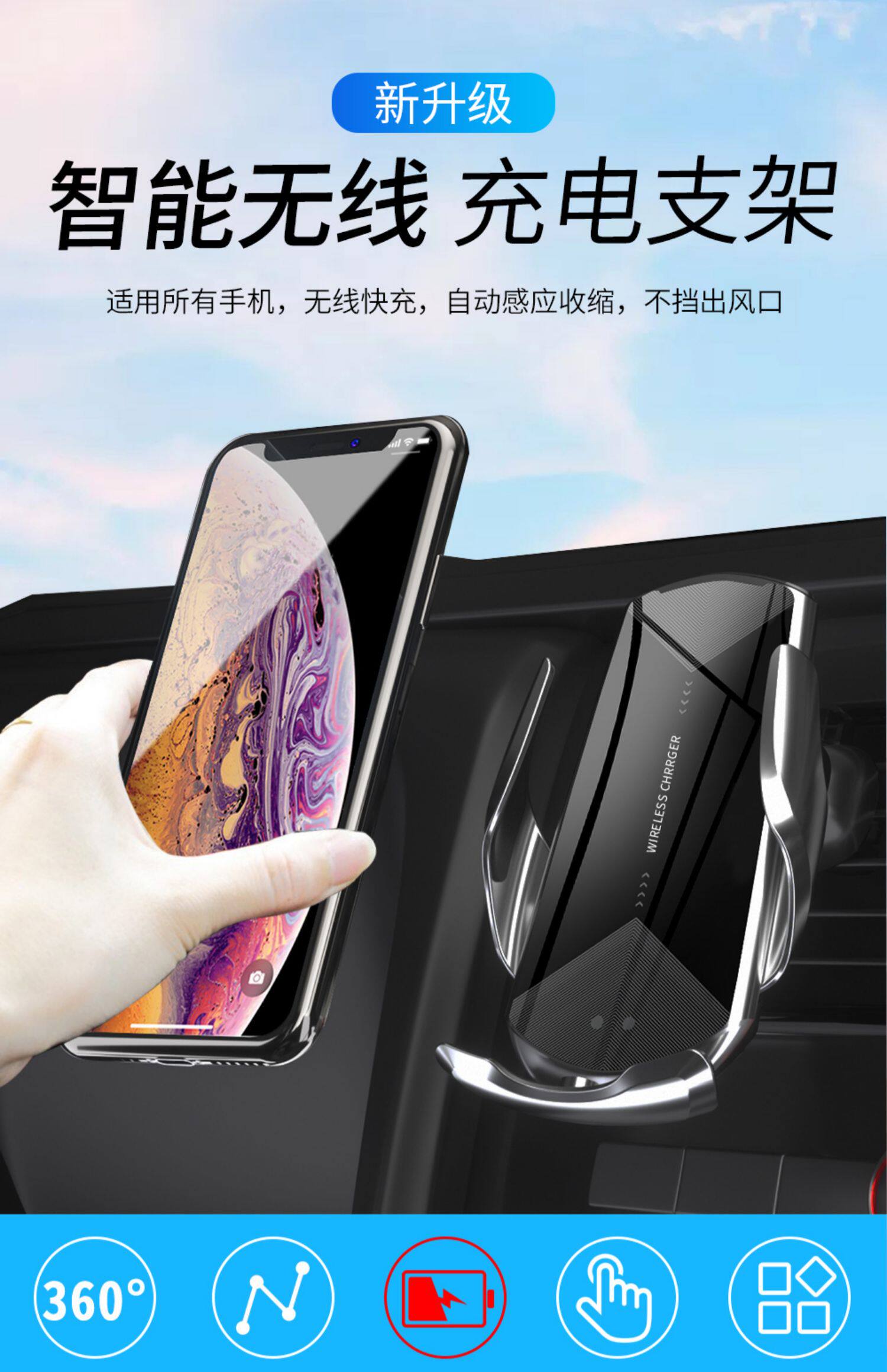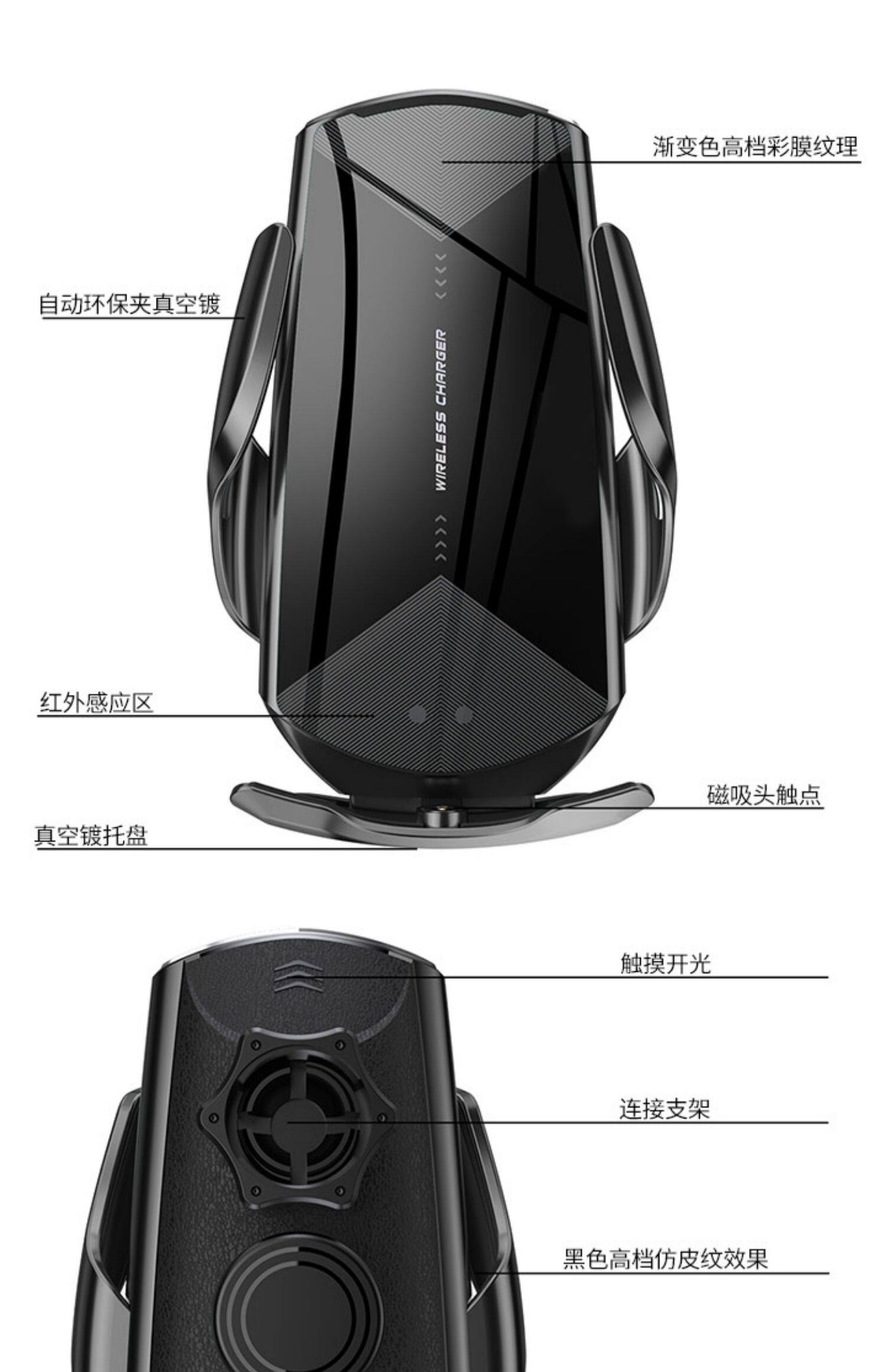 - [Cool Black] модернизированная модель · Мобильный телефон Universal (беспроводная быстрая зарядка) Отправить всасывающие чашки+высококачественные парковочные знаки