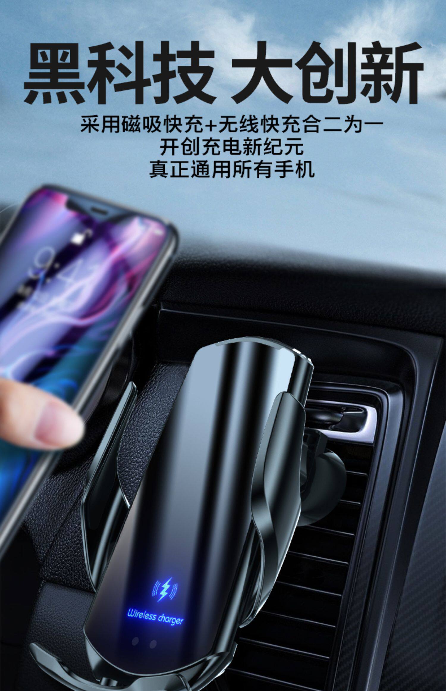 - Двойная зарядка, 15 Вт [Q3 Blue] на присоске + автомобильное зарядное устройство