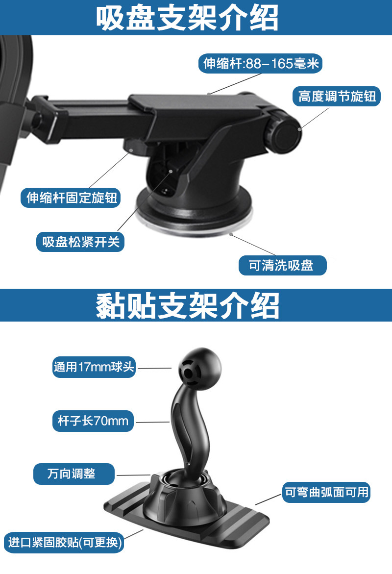 - Двойная зарядка, 15 Вт [Q3 Blue] Клейкий держатель + автомобильное зарядное устройство