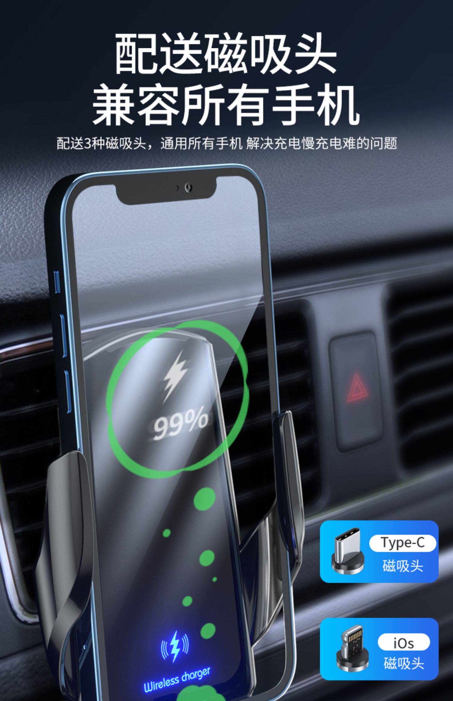 - Двойная зарядка, 15 Вт [Q3 Gold] на присоске + автомобильное зарядное устройство