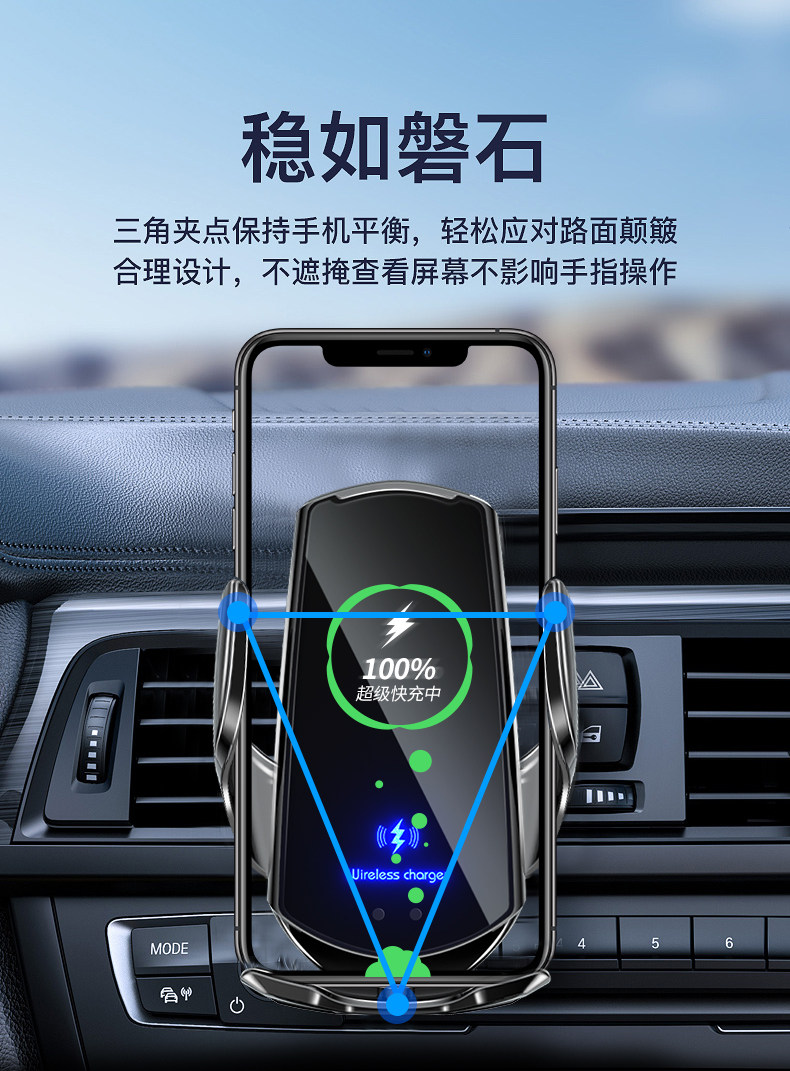 Универсальный мобильный телефон, беспроводное умное автоматическое динамичное зарядное устройство, индукционная опорная рама, полностью автоматический, фиксаторы в комплекте, 15W