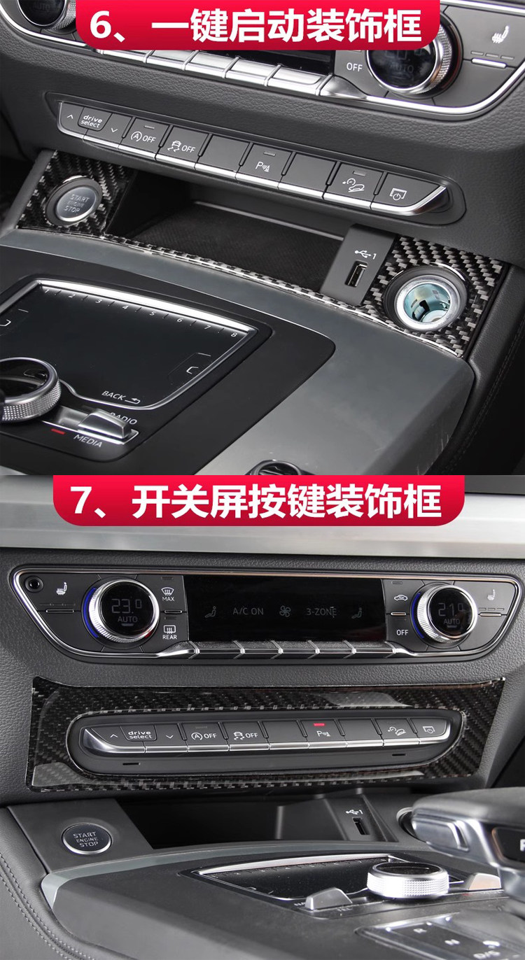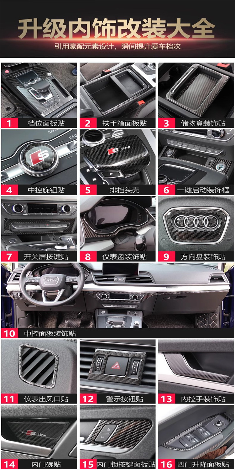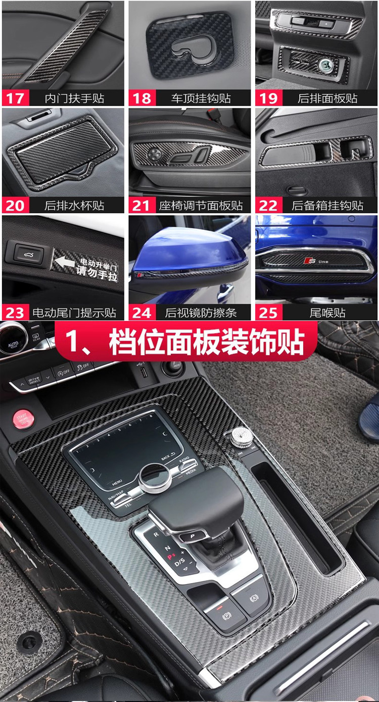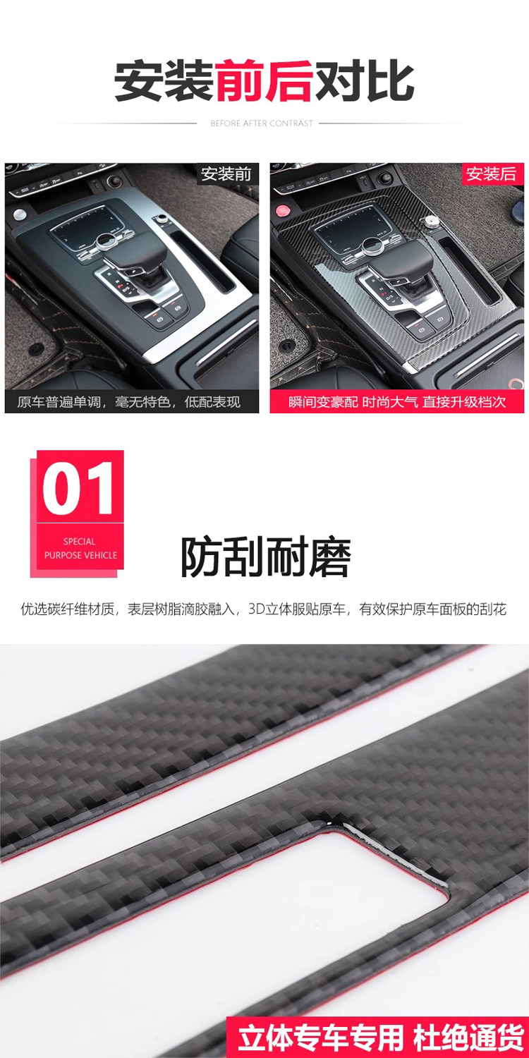 Применимо к 18-24 Audi Q5L Central Control Gear Panel Панель углеродного волокна.