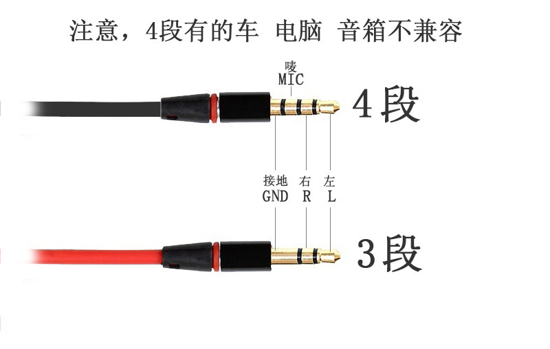 3 -сегментная линия используется для стереопродукции, а 4 -й сегмент имеет больше микрофона или видео функций, ноВ линии интерфейса 4 -го уровня есть отверстия для автомобиля.Пожалуйста, будьте осторожны, чтобы не думать, что уровень 4 лучше, чем уровень 3, вы должны купить его как актуальный!Перед покупкой обратите внимание на то, совместимо ли устройство!Пересечение