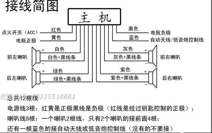 Белый: левый фронт динамик положительный белый/черный: левый передний динамик негативно