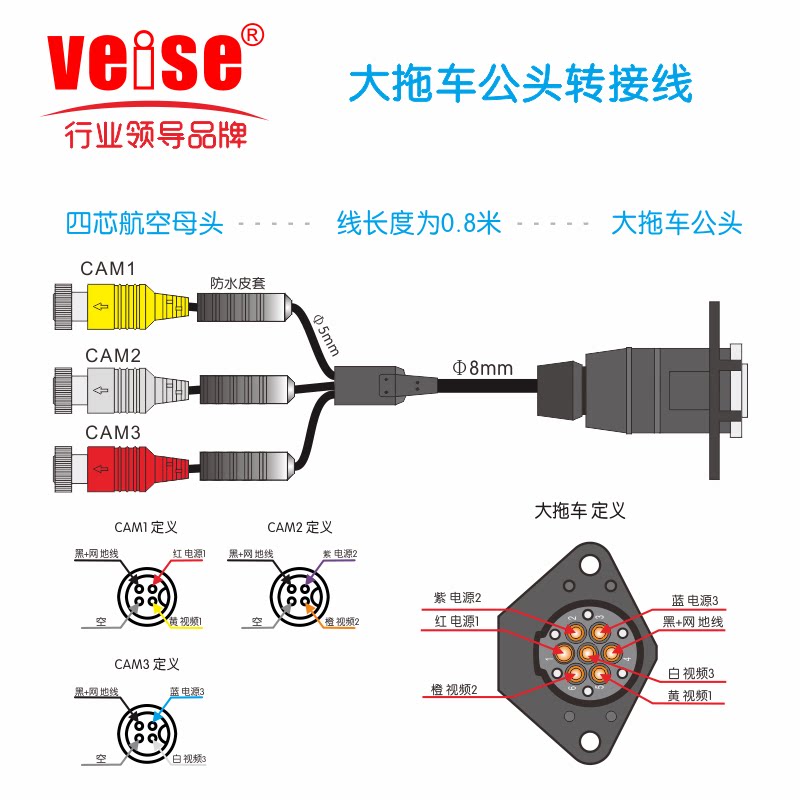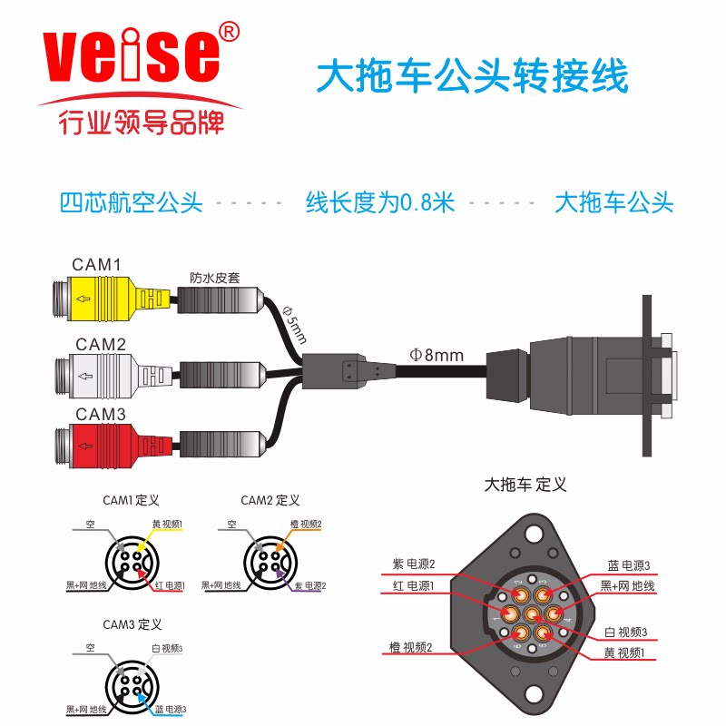 Visi Veise Trailer Trailer Spring Ryeve Audio и удлинительное кабель преобразования видео хорошо подходит для телескопического растягивающего сопротивления