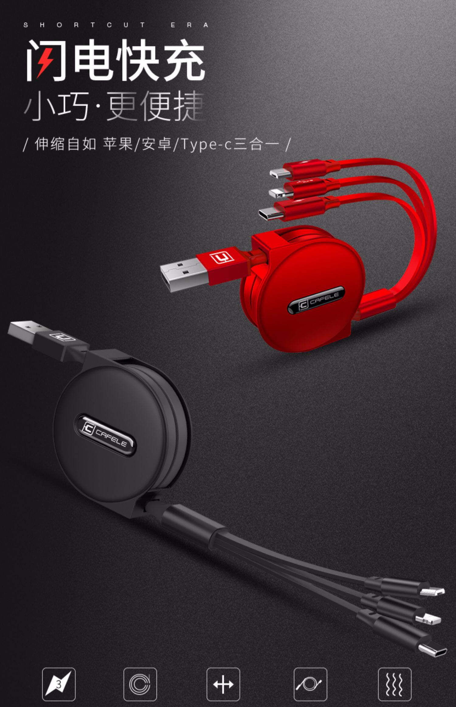 | Цвет: | Черный ★ Высокоскоростная и стабильная зарядка., Красный ★ Стабильная зарядка., Белый ★ Стабильная зарядка с тремя в одном [Apple+Android+Type-C] |