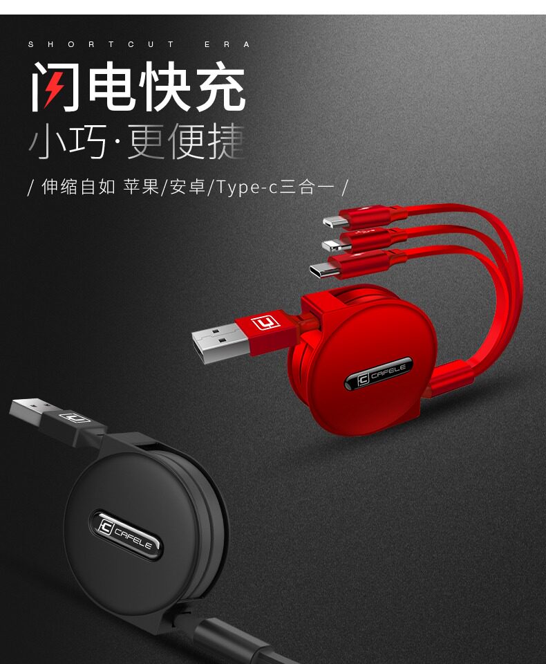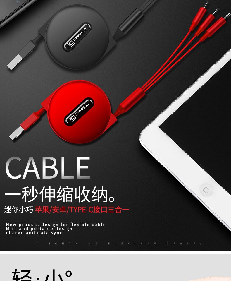 Apple, мобильный телефон, зарядный кабель, универсальная телескопическая система хранения, андроид, «три в одном»