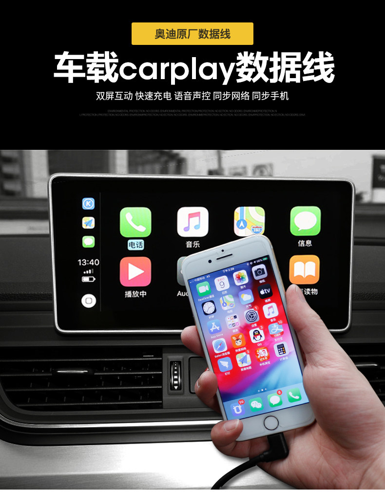 Audi A3A4LA5A6LQ2LQ2LQ3Q5LQ7CARPLAY Оригинальный кабель передачи данных быстро зарядка Apple Car Зарядка