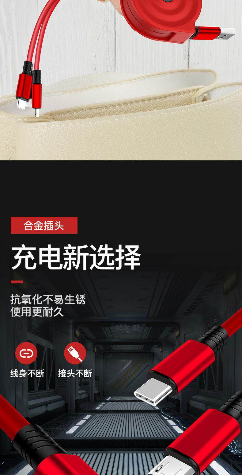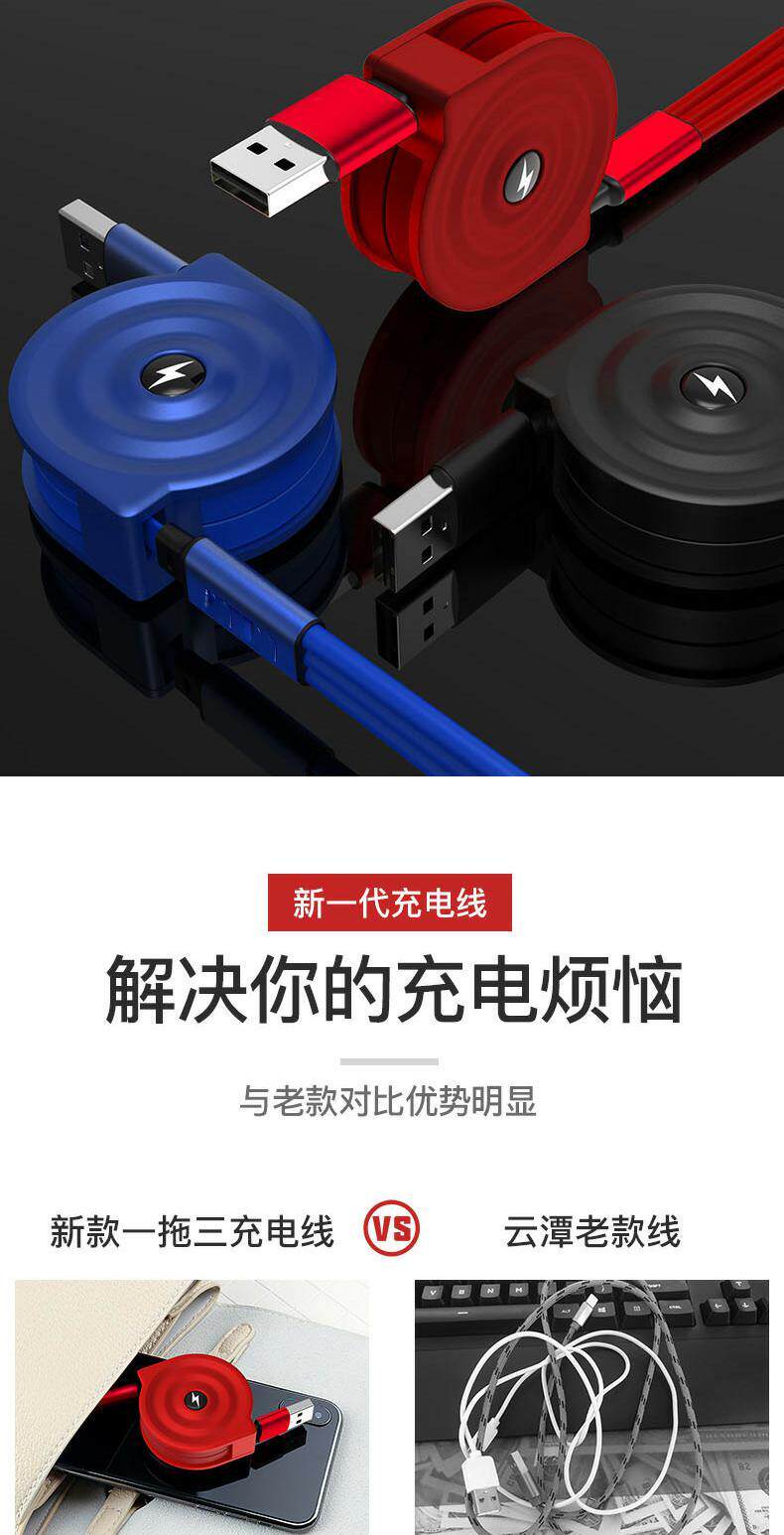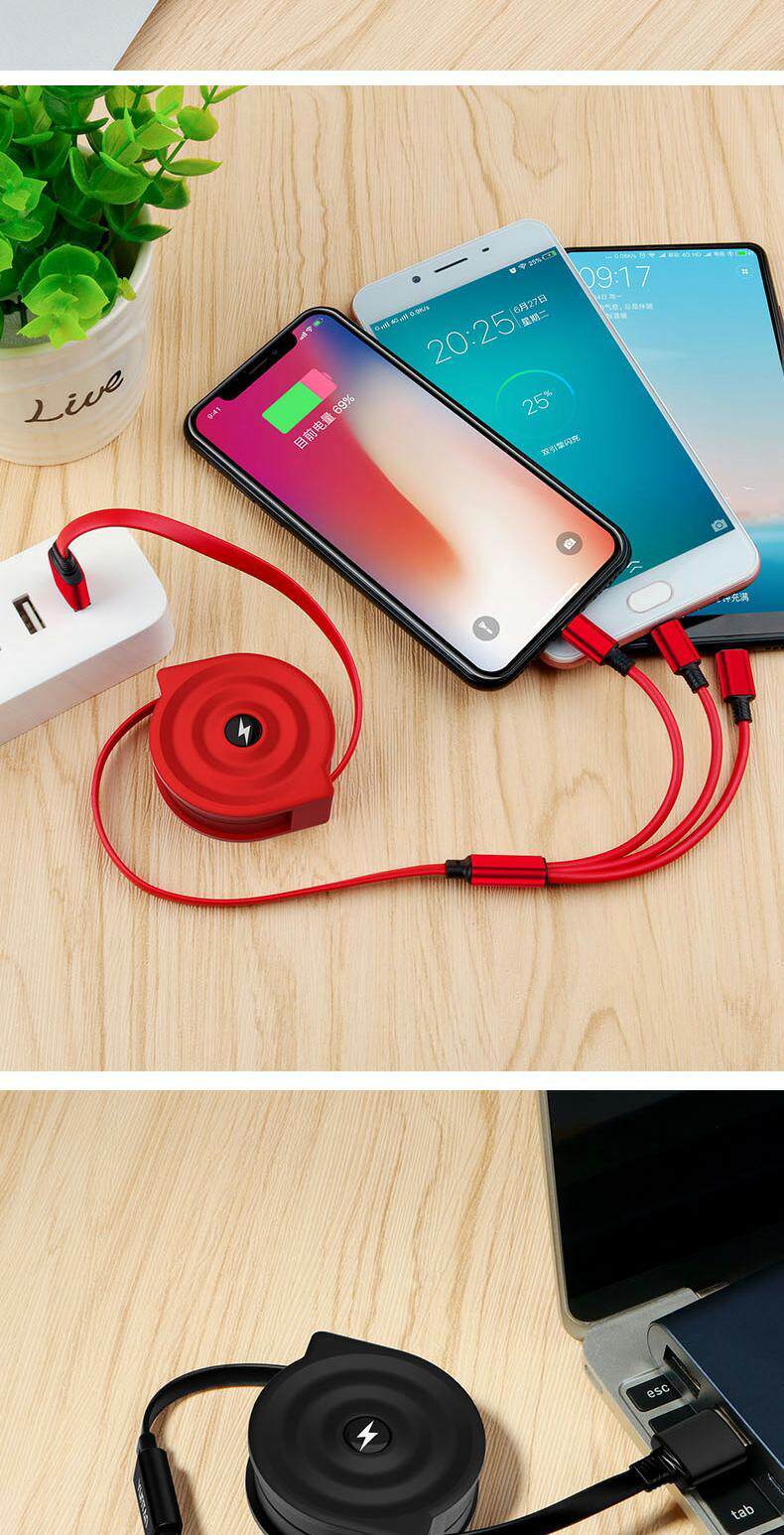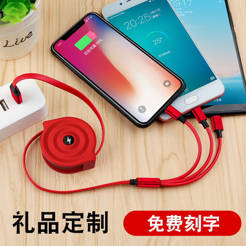 Три в одном кабель передачи данных быстро зарядка Apple One-Trailer Carrier зарядка с несколькими головными телефона Android Type-C Long